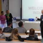 Mit großem Dank verbunden war seine Begrüßung der aus Indien angereisten Schwester Hilda Rodrigues, die sich Mitte September für 50 interessierte Schülerinnen und Schüler Zeit nahm, um ihnen das Pathardi Projekt nochmal ein Stückchen näher zu bringen. Darunter waren die Sozialversicherungsfachangestellten und die Medienkaufleute, die seit Jahren das Projekt durch ihr Engagement unterstützen.